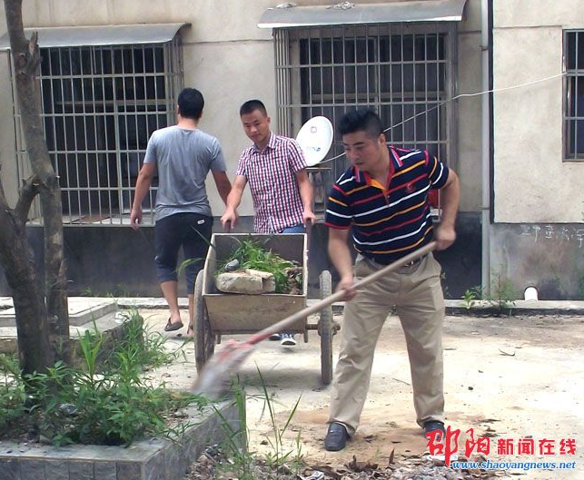 邵阳县房产局党员帮助廉租房小区大扫除 |